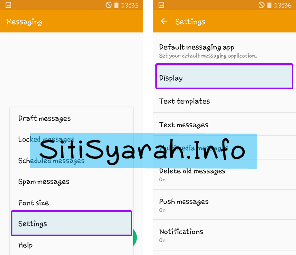 Masuk ke menu SMS atau Messenger kemudian pilih Setting – Display