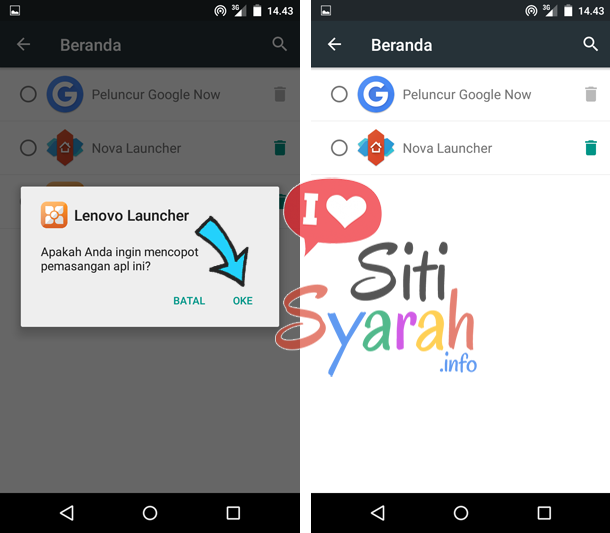 Konfirmasi bahwa kamu akan menghapus launcher tersebut dari hp Android kamu.